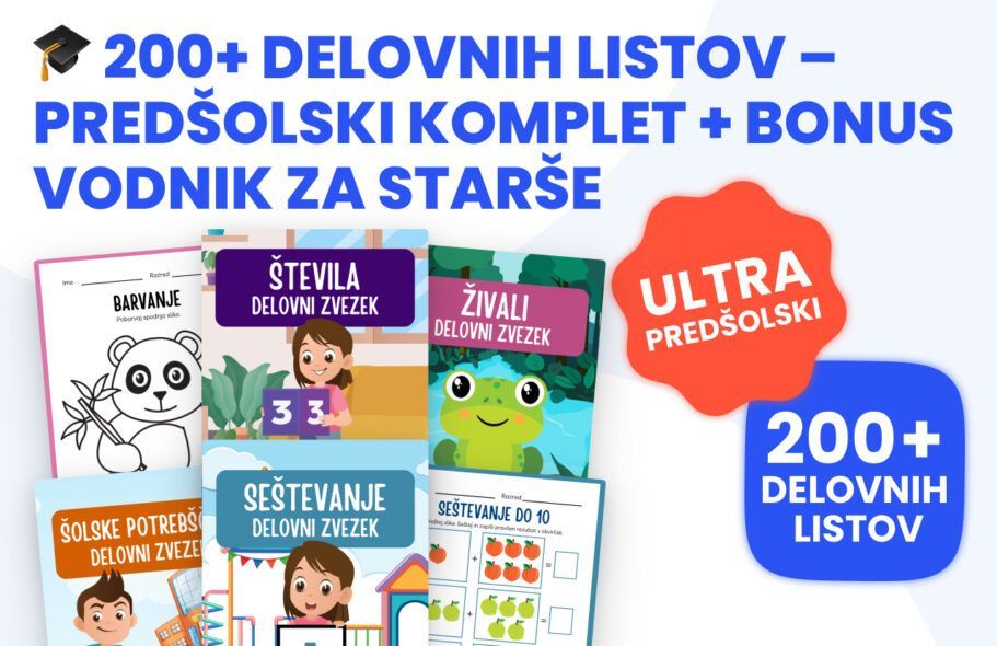 💰 Običajna cena – 39,99 €, a danes lahko prejmete celoten PREDŠOLSKI ULTRA KOMPLET + BONUS VODNIK ZA STARŠE z več kot 200 delovnimi listi za samo 9,99 €!
